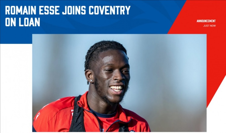 水晶宫官方宣布,罗曼·埃塞租借加盟英冠球队考文垂。